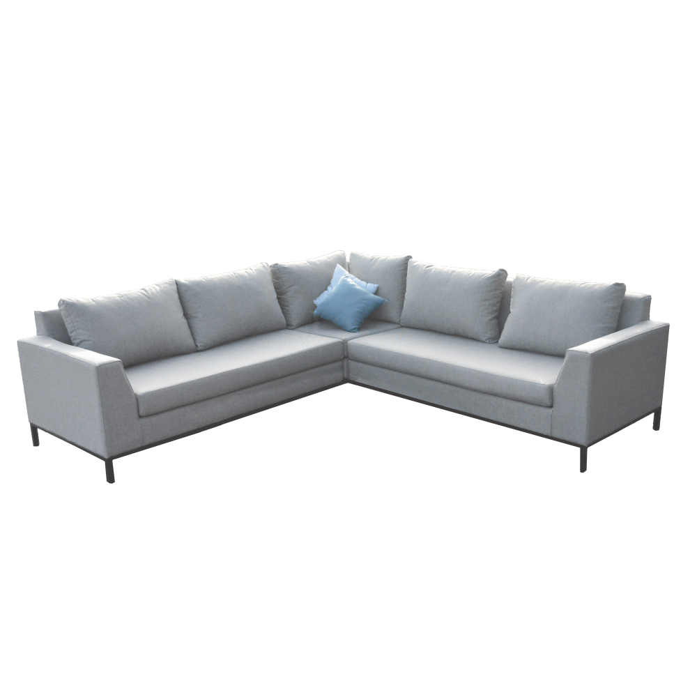Powder-coated aluminium base with quick dry memory foam cushions covered with Nanofabric covers. The material is water-repellent, anti-fungal, UV-protective and easy to maintain.