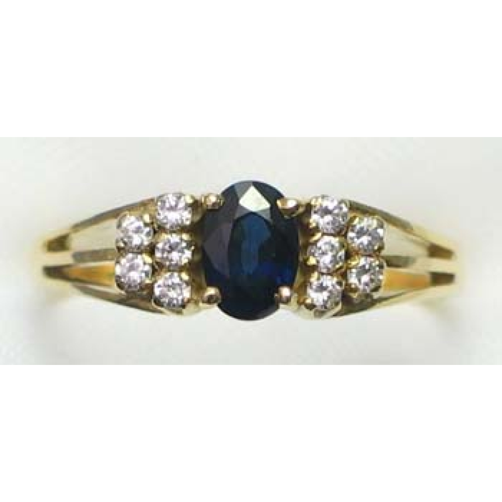 ring goud 9K met saffier en CZ