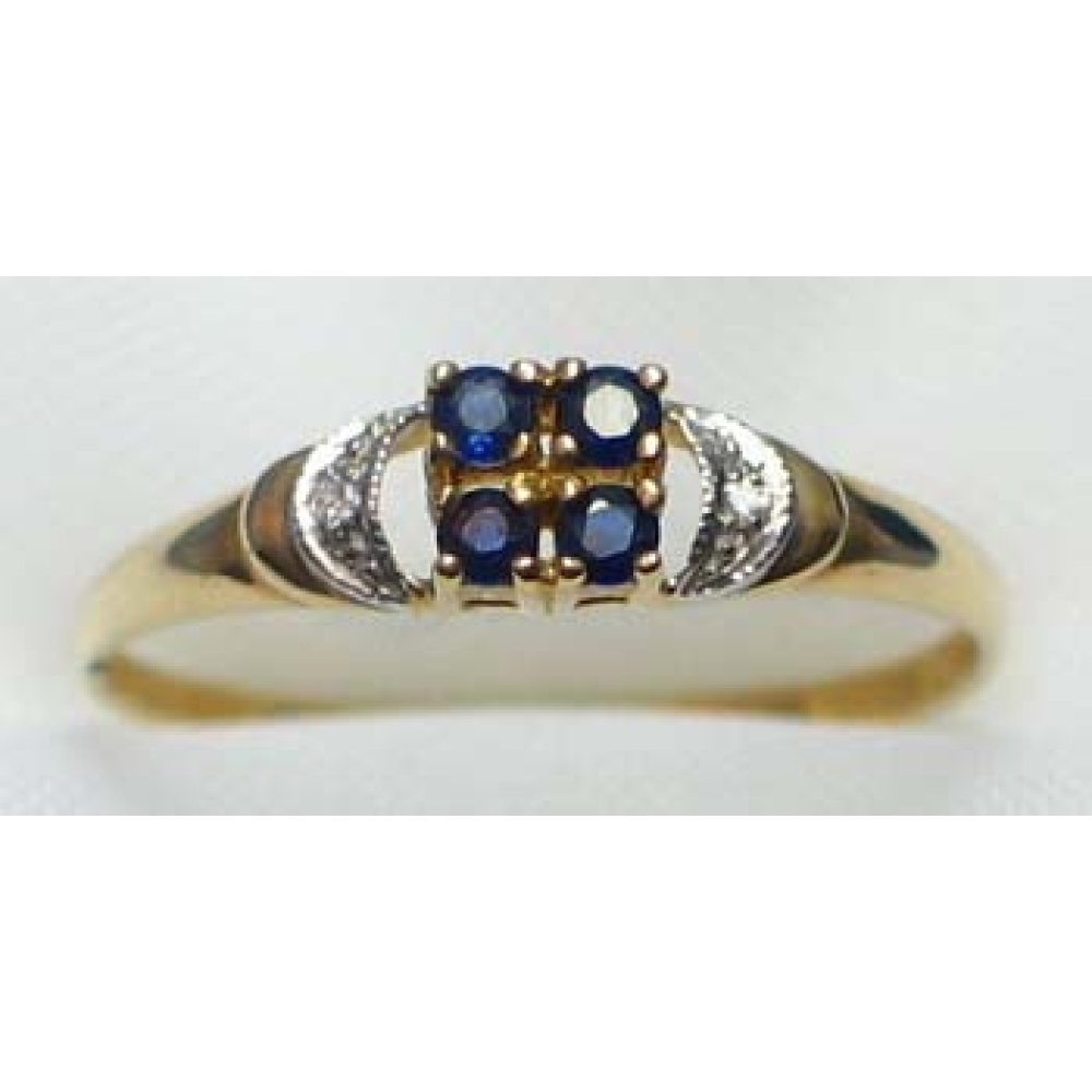 ring goud 9K met saffier en CZ