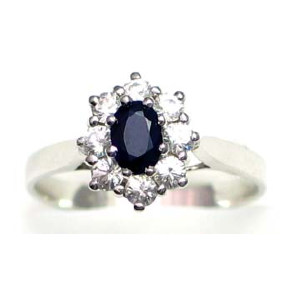ring zilver 925 rhod met saffier en CZ